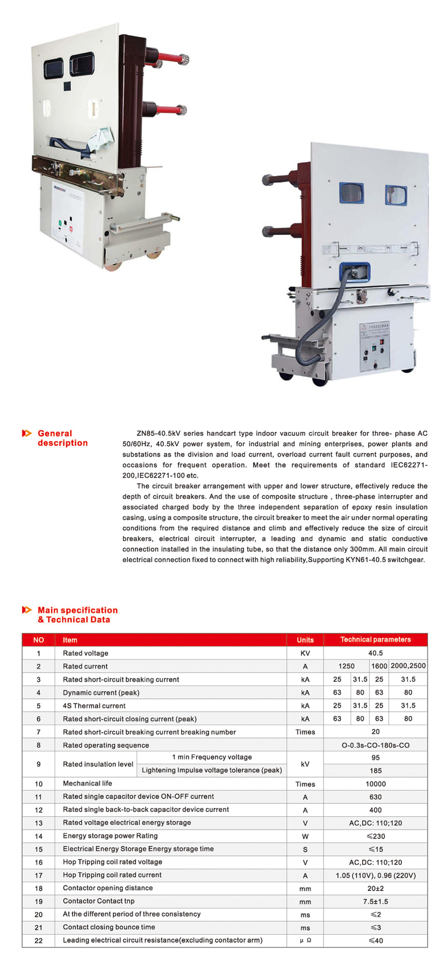 ZN85-40.5KV Indoor High-voltage Vacuum Circuit Breaker