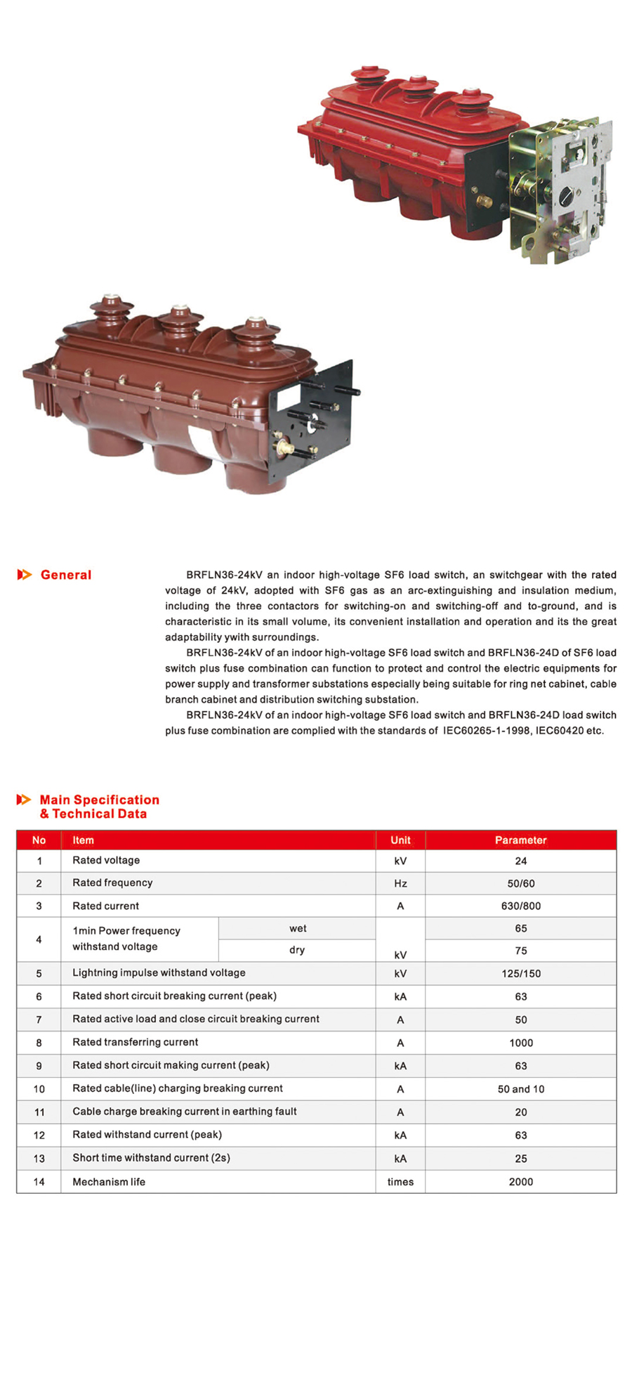 BRFLN36-24KV Indoor High-voltage SF6 Load Break Switch