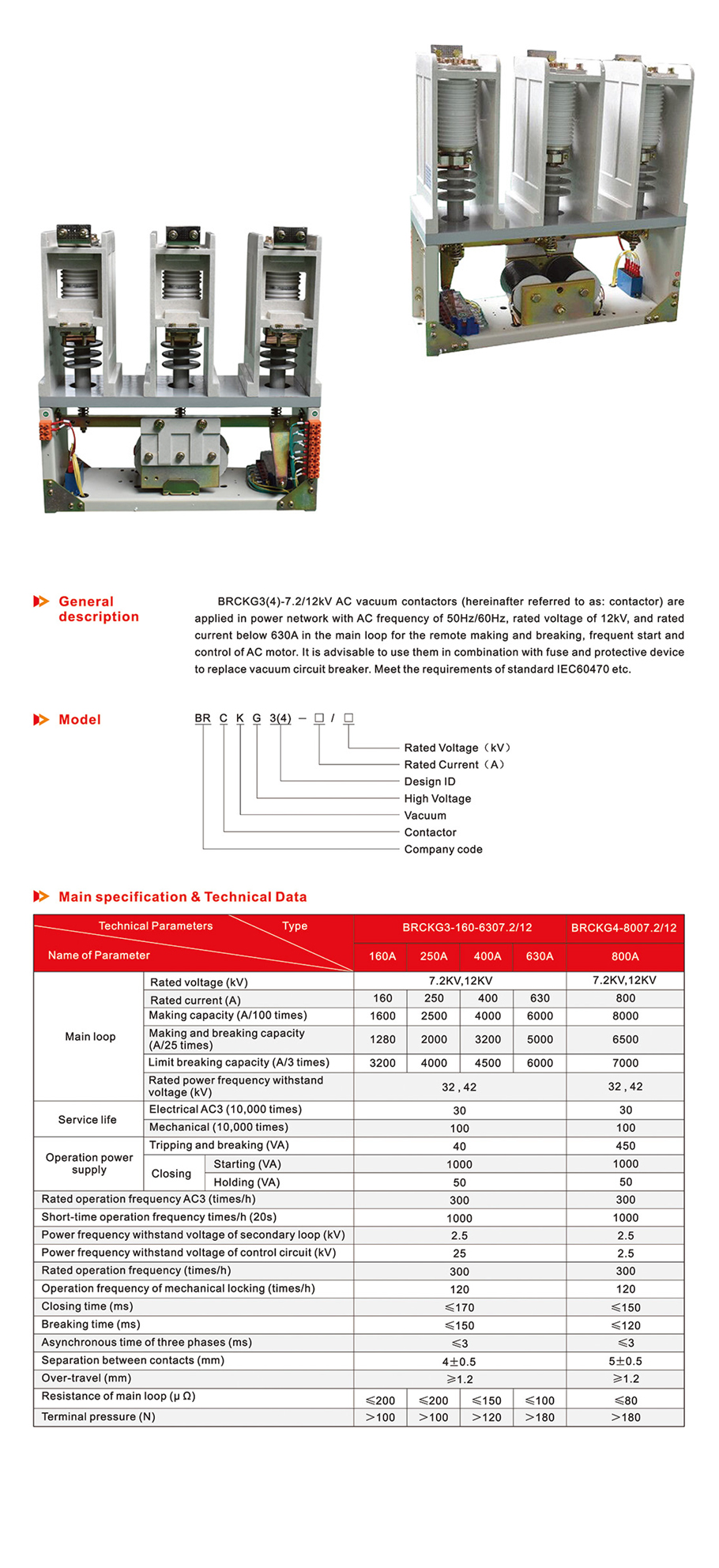 BRCKG3(4)-7.2/12KV Indoor High-voltage Vacuum Contactor
